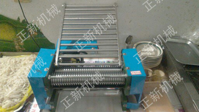 動力0.5千瓦,電壓220伏,產量30公斤/時。此機可以連續切,也可以放到店里隨要隨切,調一碗面皮切一張面皮,方便的很。QQ:1453209304